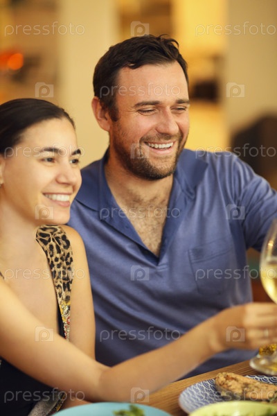 Довольная пара во время даннера в ресторане