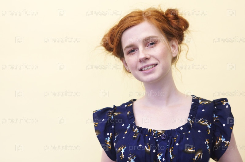 Красивая молодая рыжеволосая девушка с вьющимися волосами