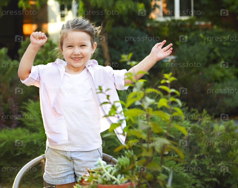 Веселая маленькая девочка в летнем саду