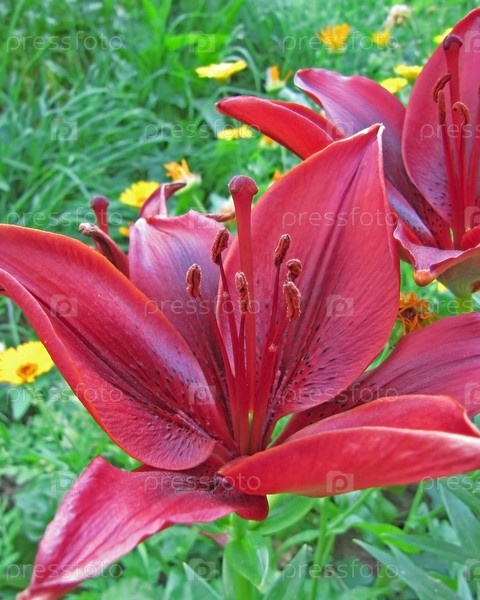 Красный цветок лилии крупным планом