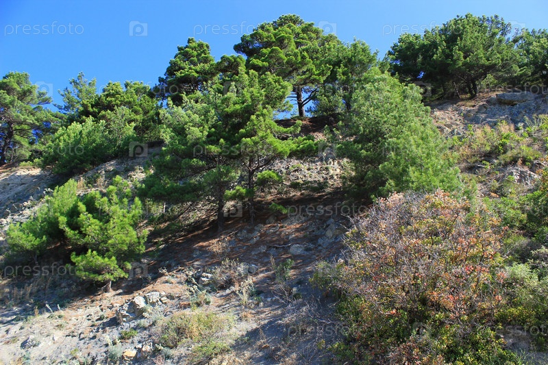 Деревья на склоне, trees on the slope