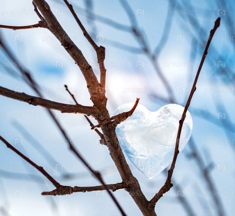 Ледяные ветви сердца на фоне лучей весеннего неба. концепция любви, романтика, 14 февраля, День святого Валентина. зимние каникулы. ледяное сердце. весеннее время