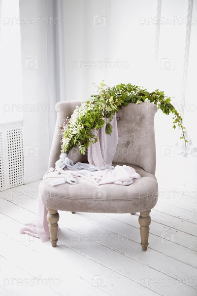 Кресло с зеленой веткой и цветами