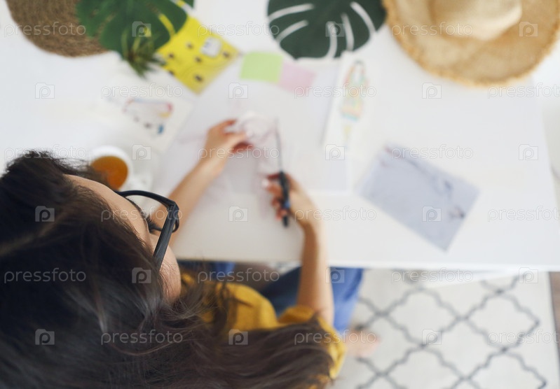 Молодая брюнетка создает свою карту желаний фэн-шуй