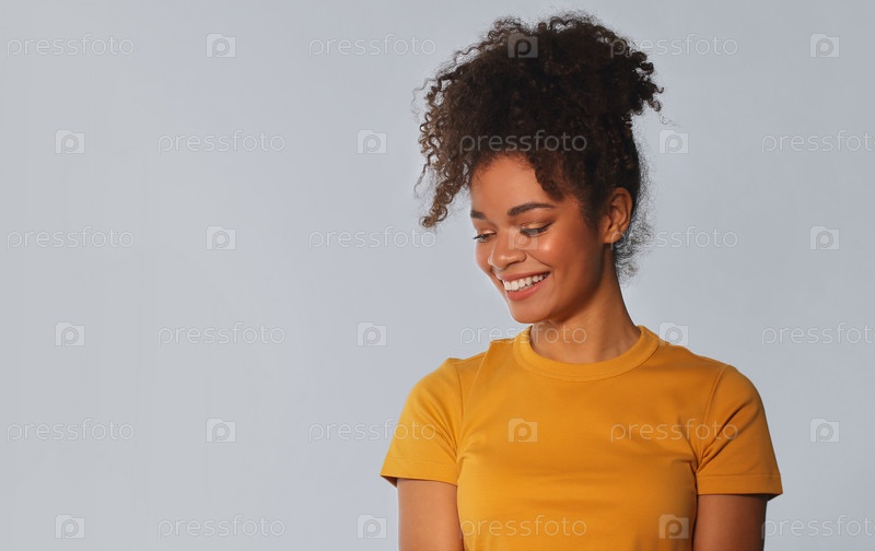 Обрадованная афроамериканка смеется и выражает положительные эмоции