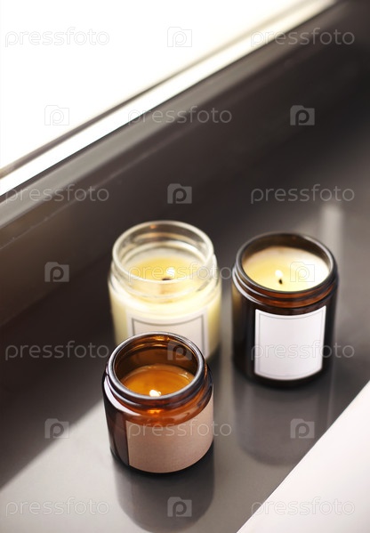 Зажжение свечей на подоконнике в домашних интерьерах крупным планом