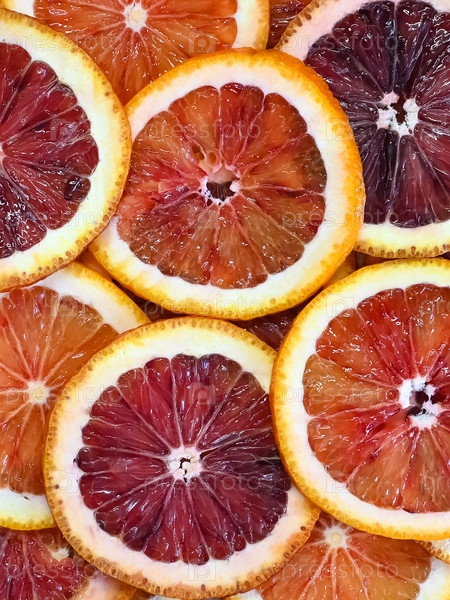 Абстрактный фон из цитрусовых ломтиков. Крупный план. Студийная фотосъемка