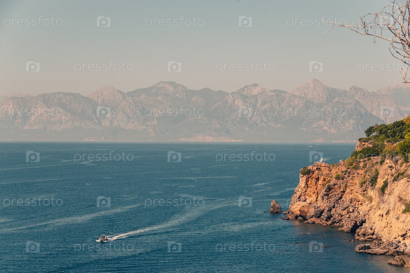 Морская даль на фоне гор на горизонте