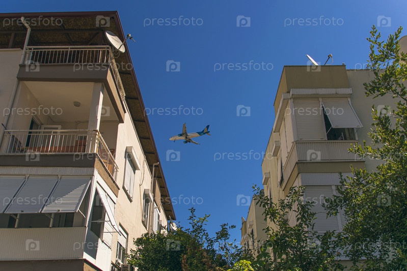 Пассажирский самолет заходит на посадку над жилыми районами