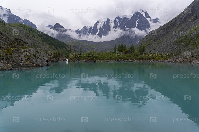 Отражение гор в водной глади. Верхнее Шавлинское озеро. Август, Горный Алтай