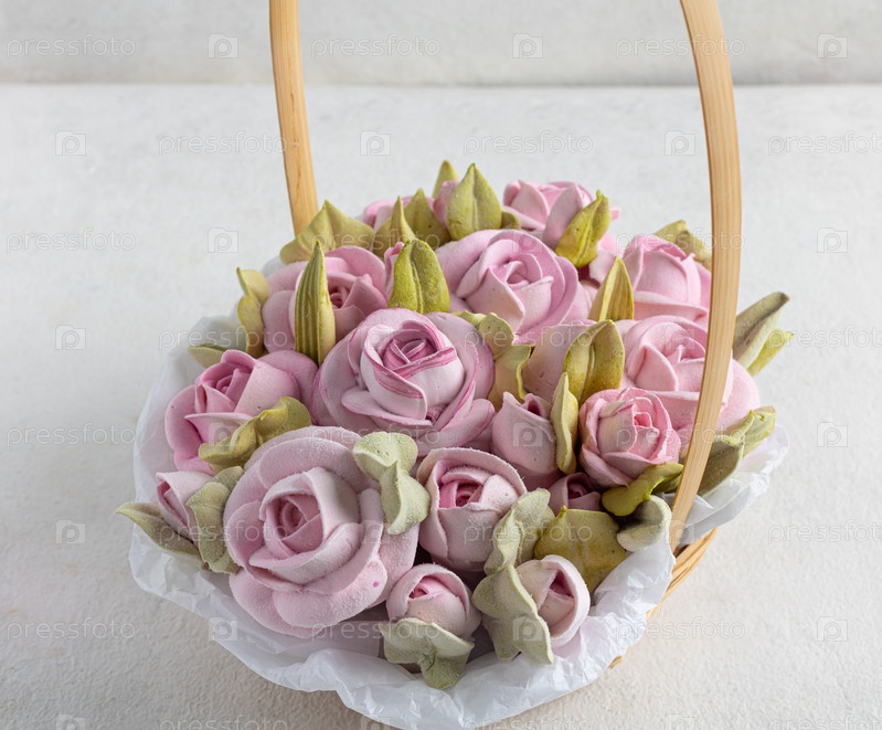 Цветы в пастельных тонах в белой корзине изолированы, флористический свадебный подарок фон, 8 марта, женщины