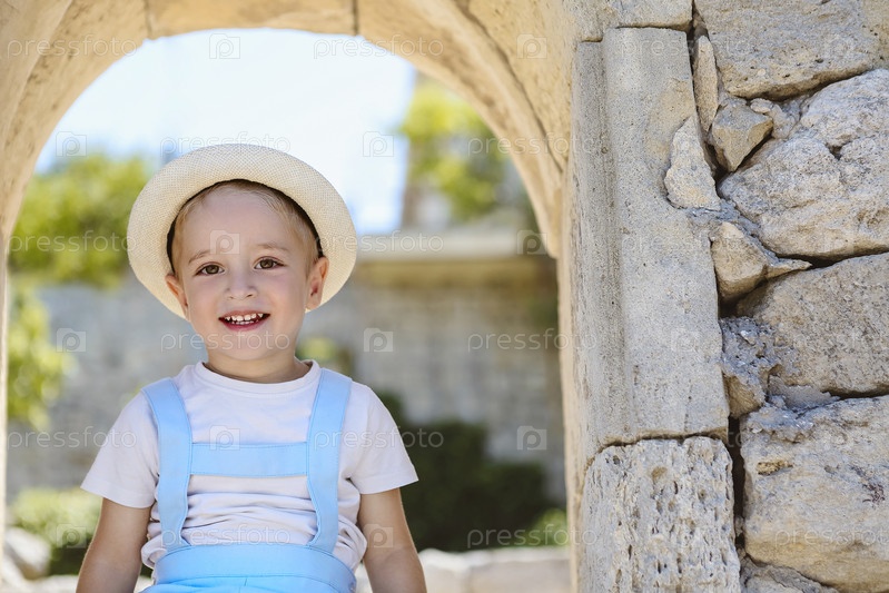 Довольный мальчик в шляпе наслаждается отпуском