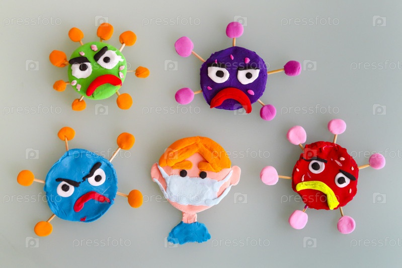 Глиняные персонажи на сером фоне. Вирус короны или ковид-19