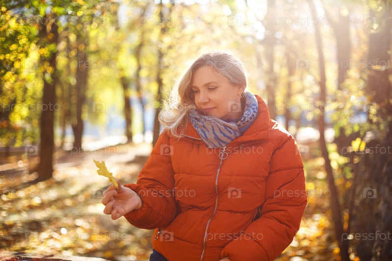 Веселая женщина в осеннем парке