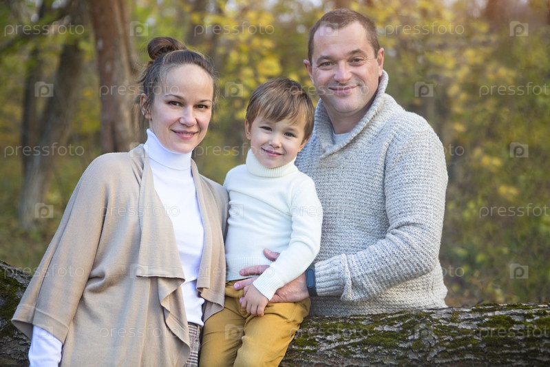 Отец, мать и маленький сын в осенний день