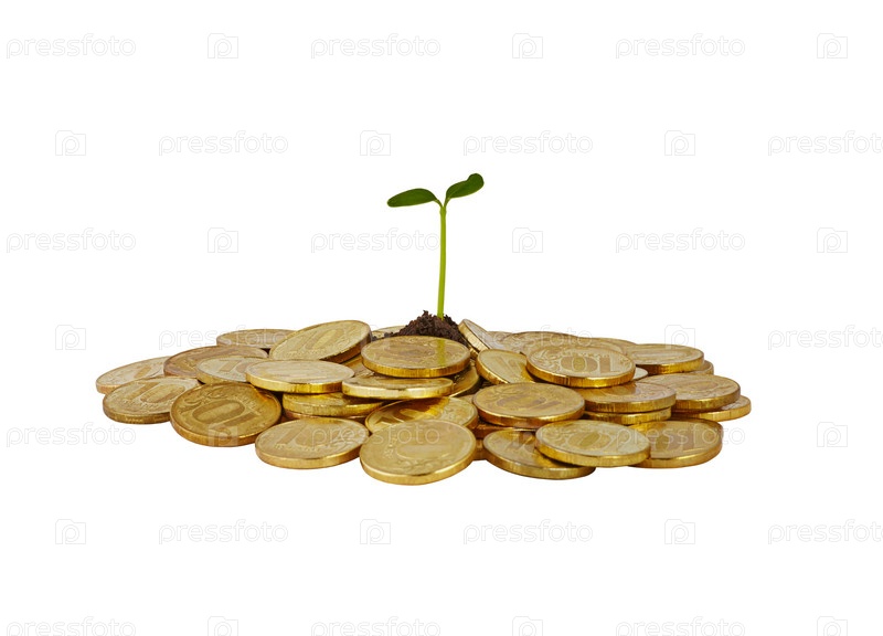 Горсть монет с небольшим ростком