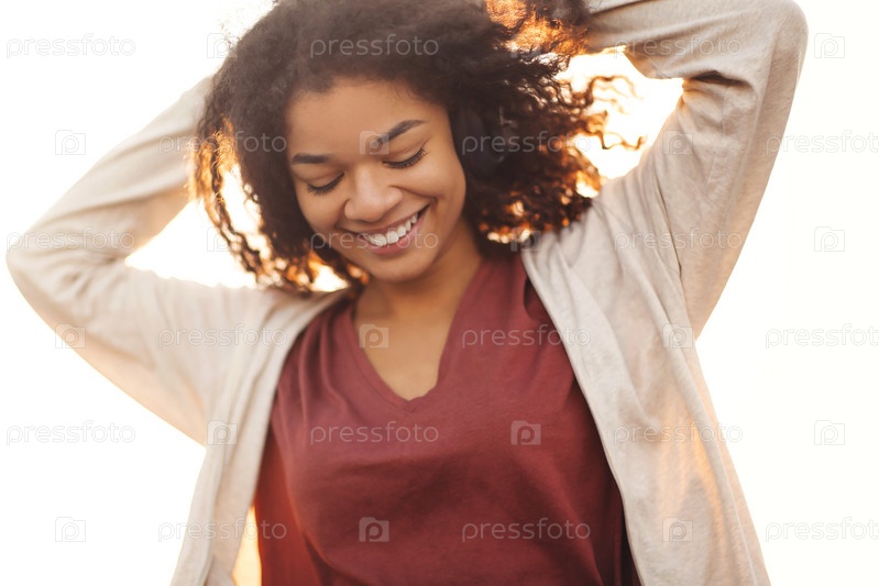 Молодая беззаботная африканская американка в полный рост прыгает на крыше под утренним солнечным светом