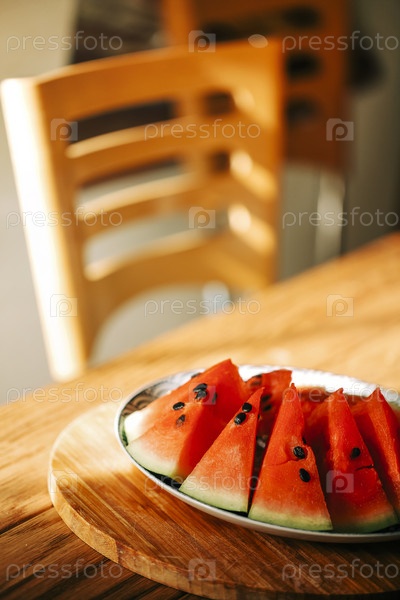 Кусочки свежего арбуза на кухне