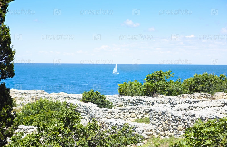 Древнегреческая базилика и мраморные колонны в Херсонесе Таврическом