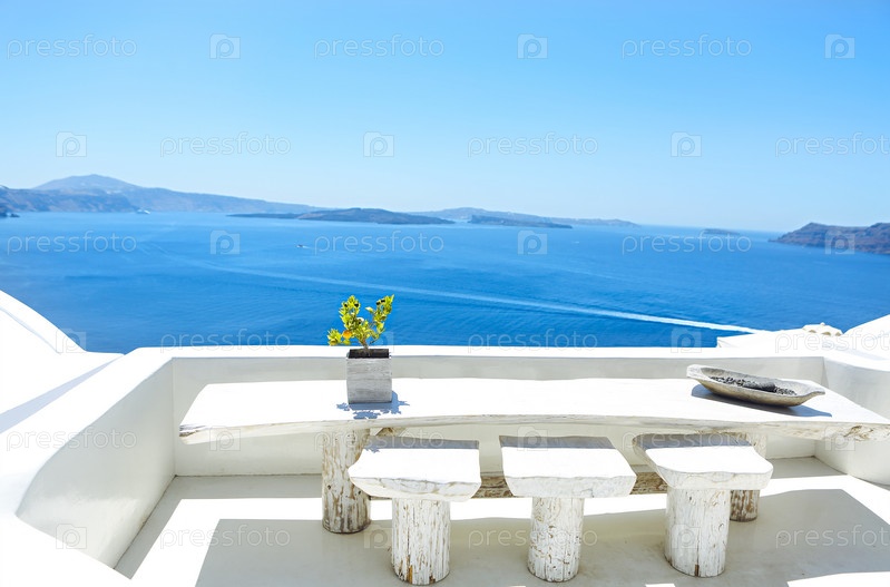 Вид сверху на море и деревню Ия, Греция