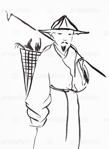 Китайская крестьянская рука, нарисованная в стиле суми-э