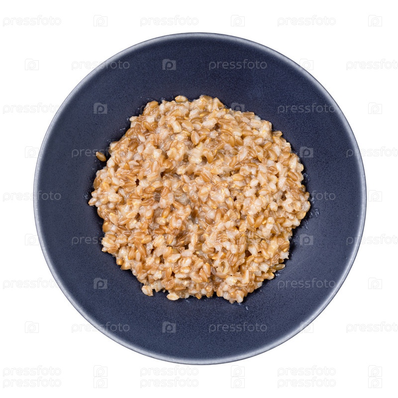 Вид сверху на кашу из цельнозерновой эммер фарро