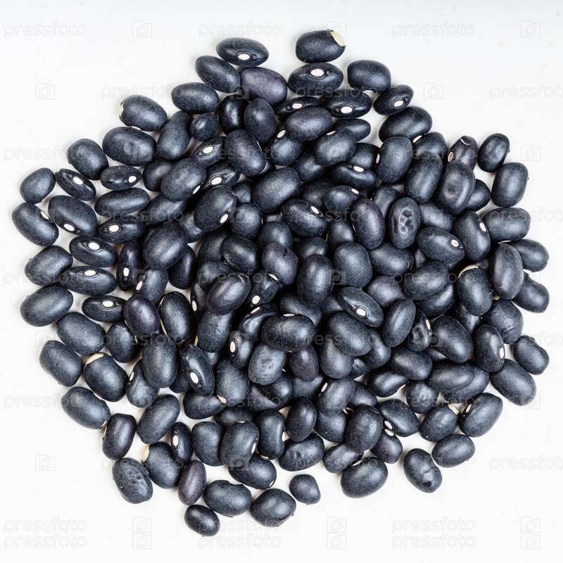 Куча черных мексиканских бобов крупным планом на серой тарелке