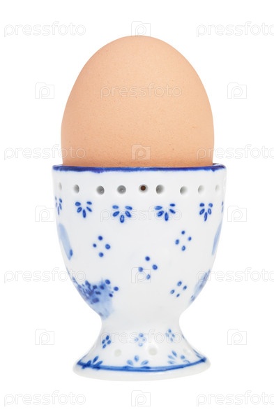Коричневое вареное яйцо в чашке с заостренным концом