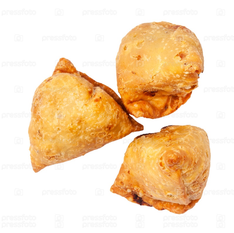 Вид сверху на три индийские самосы изолированы