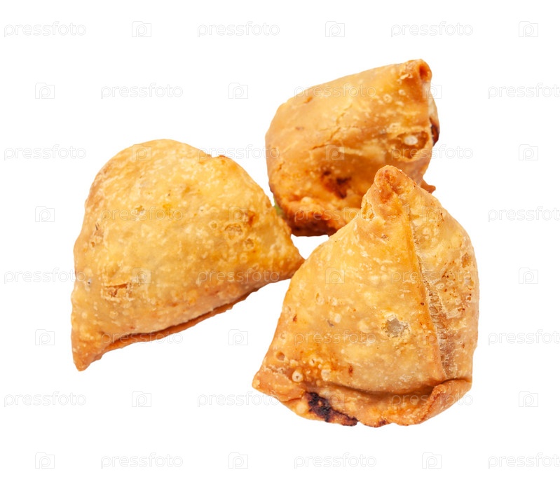 Три овощные самосы, изолированные на белом фоне
