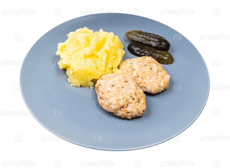 Порция рыбных котлет на пару и картофельного пюре