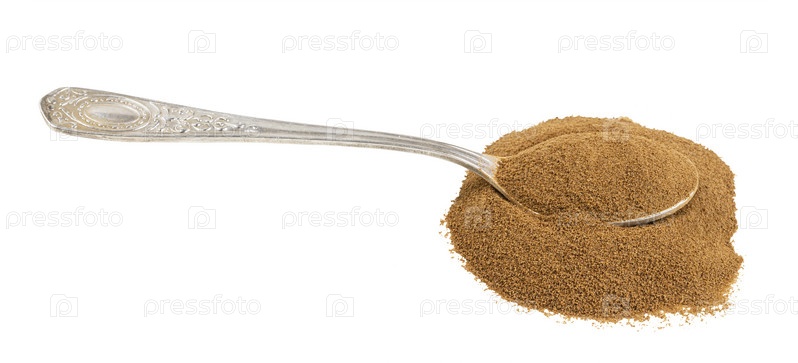 Ложка с молотым жареным корнем цикория в куче