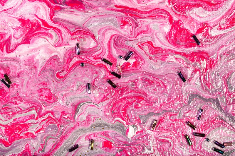 Розовые и серебряные акриловые краски, декорированные бисером