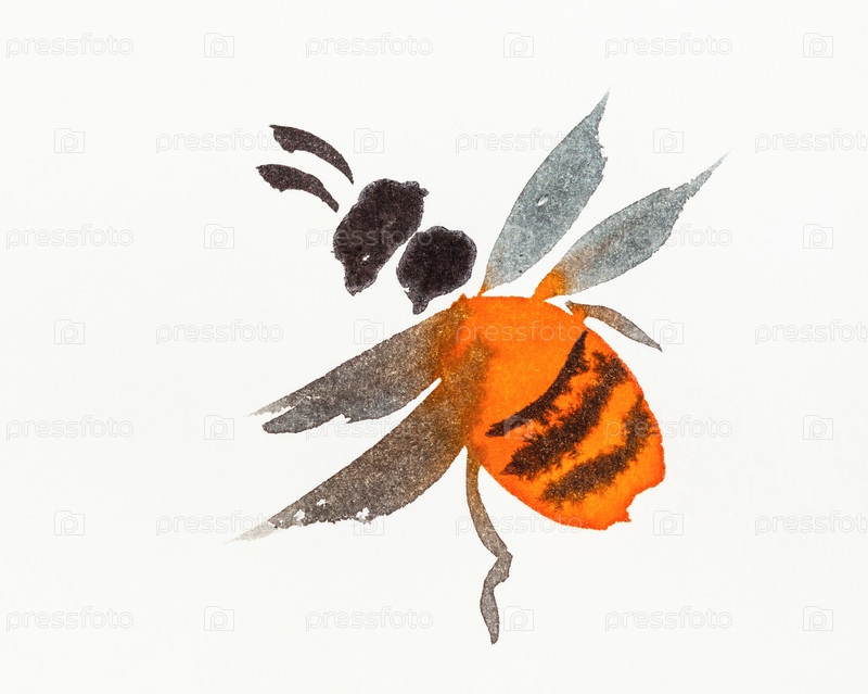 Оранжевая пчела, нарисованная вручную в стиле суми-э (суйбокуга)