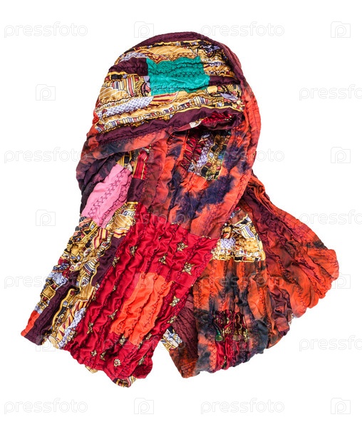 Завернутый красно-коричневый лоскутный шарф изолирован
