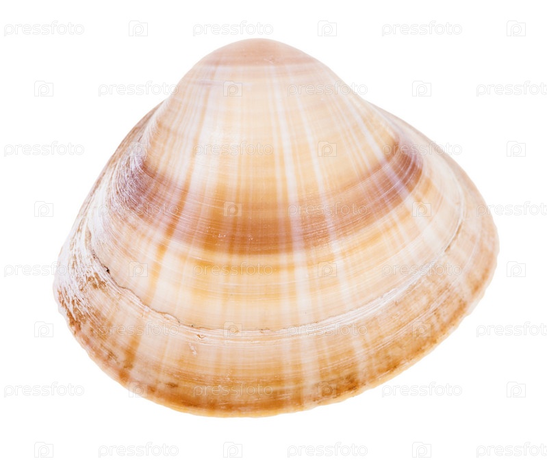 Полосатая светло-коричневая раковина моллюска изолирована