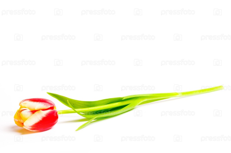 Один красный тюльпан на белом фоне