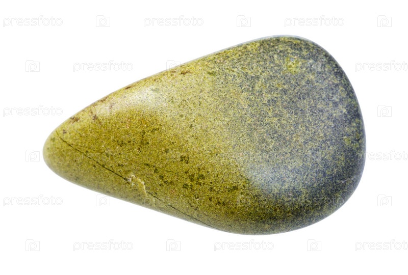 Полированный драгоценный камень Эпидот, изолированный на белом