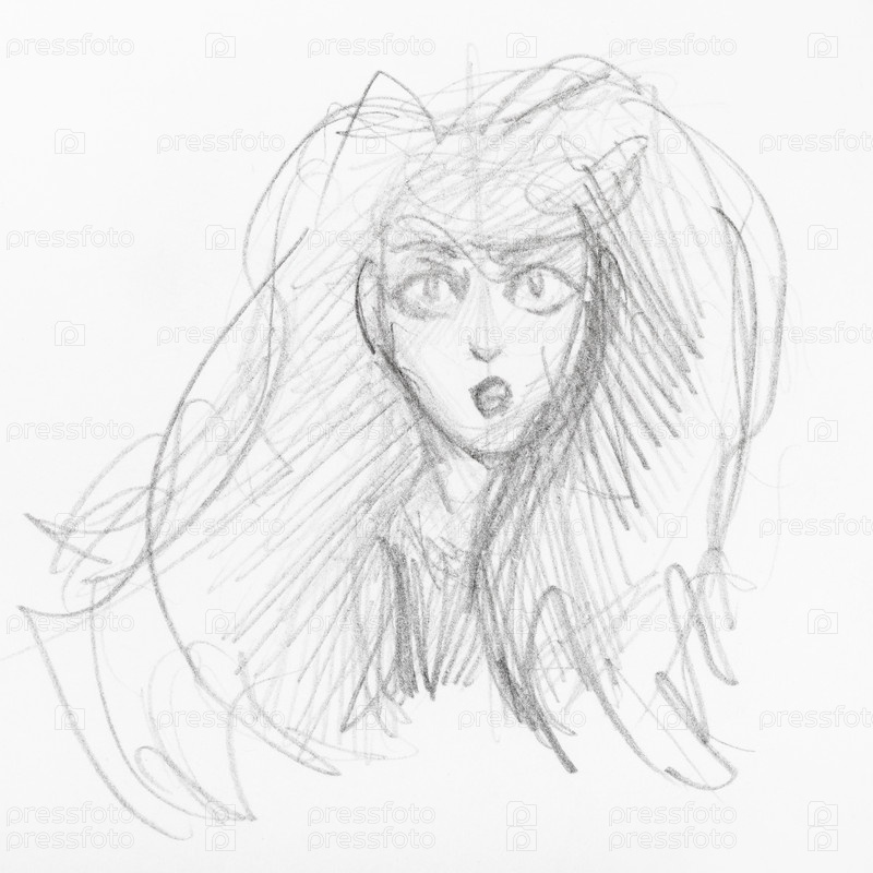 Эскиз головы девушки с пышными волосами