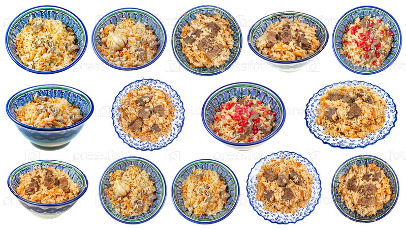Сверху вид на приготовленный плов на местной керамической тарелке