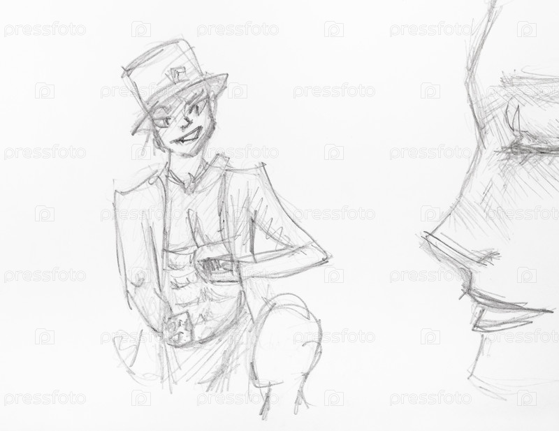 Хитрый иллюзионист в цилиндре, нарисованный карандашом