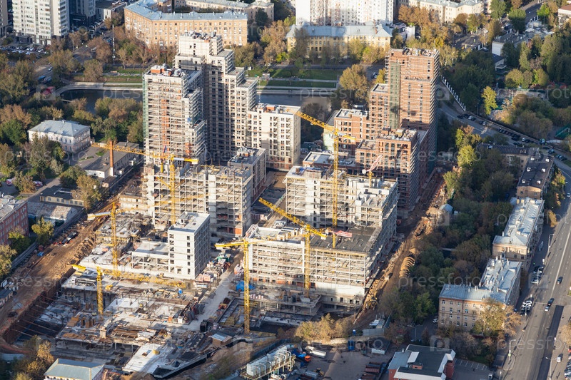 Вид с воздуха на строительную площадку городского дома