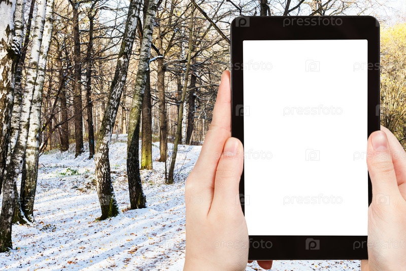 Вид на городской парк, покрытый первым снегом