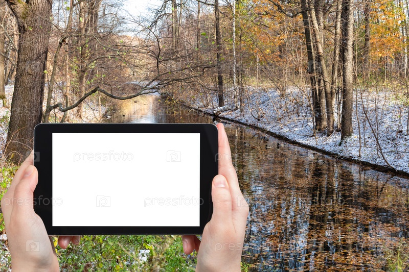 Река в городском парке в солнечный осенний день