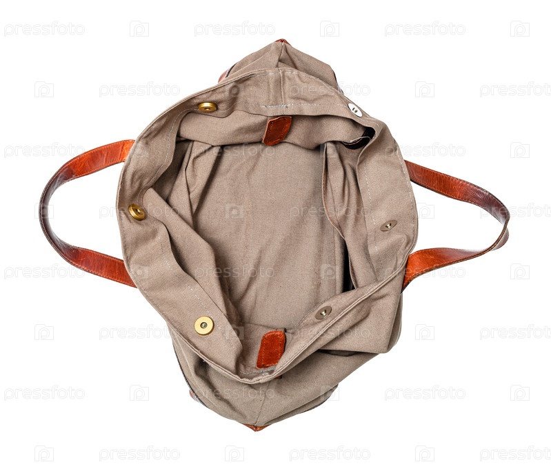 Вид сверху на пустую дорожную сумку ручной работы