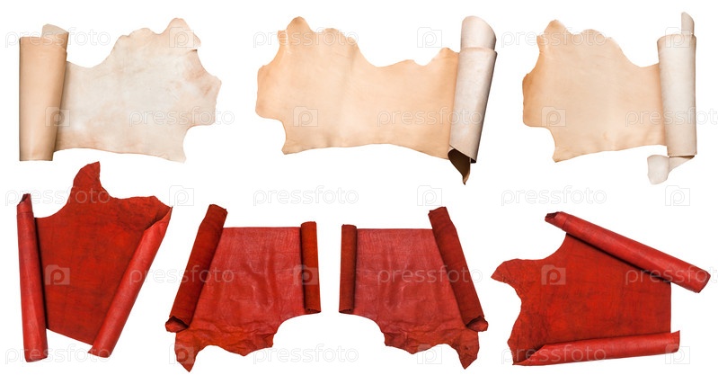 Набор свернутых кусков кожи, изолированных на белом