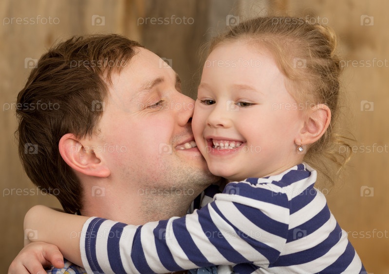 Счастливый отец целует маленькую дочь