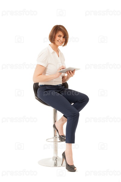 Элегантная улыбающаяся женщина с планшетом