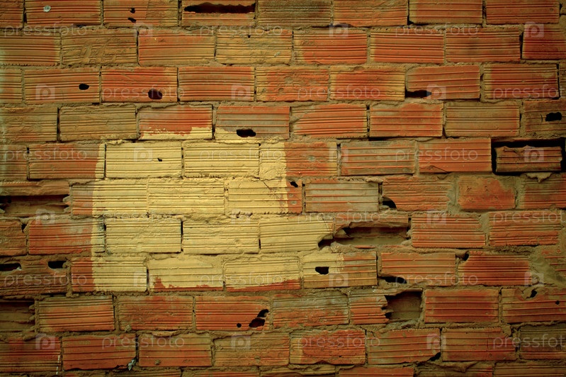 Старая поврежденная текстура стены с исчерченными красными кирпичами