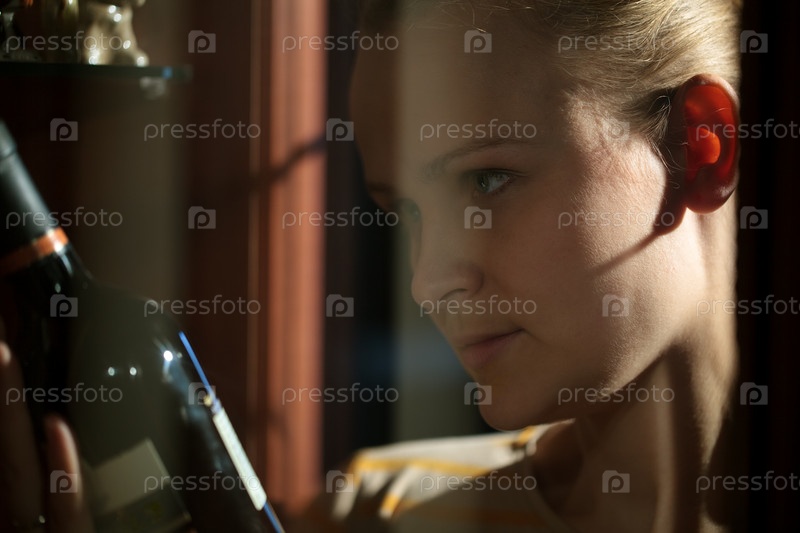 Женщина берет бутылку вина из винного шкафа